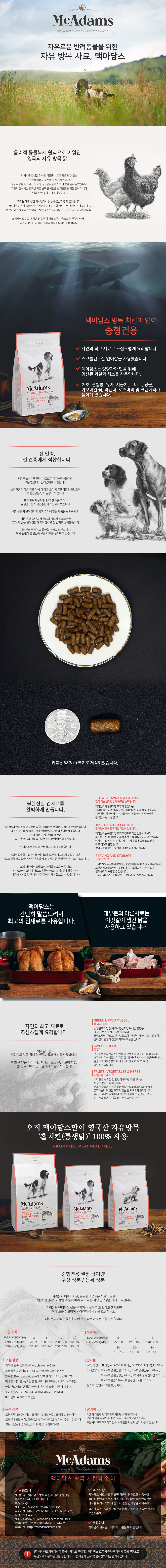 맥아담스 자유방목 홀치킨과 연어 중대형견용 사료 2kg