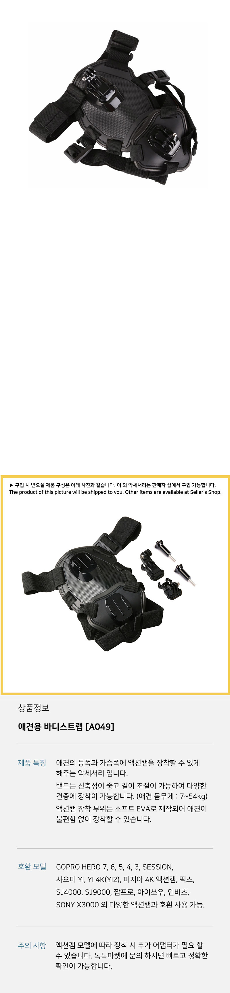 액션카메라 (고프로, 액션캠) 반려견 마운트 하네스