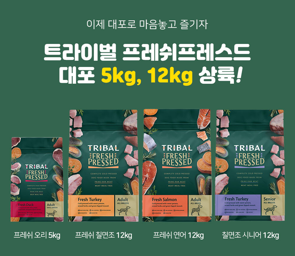 트라이벌 프레쉬 프레스드 치킨 성견용 2.5kg/12Kg